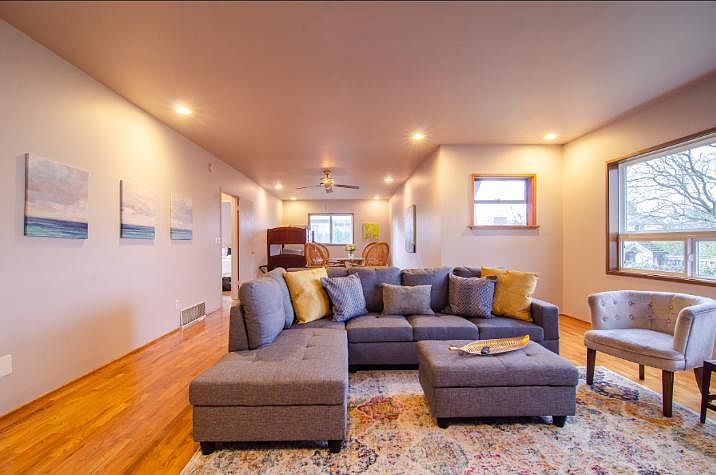 This private house has everything you want and need if you're looking to stay in Seattle. It has a great Kitchen and living area. House features 5 Bedrooms, 3 baths, 2 large living areas with a perfect layout for cooking, relaxing in the living room, or hanging out. Clean, centrally located, loaded with full amenities and offers perfect location for people looking to enjoy Seattle. Just 15 minutes to anywhere in downtown, place is perfect for any size group.
