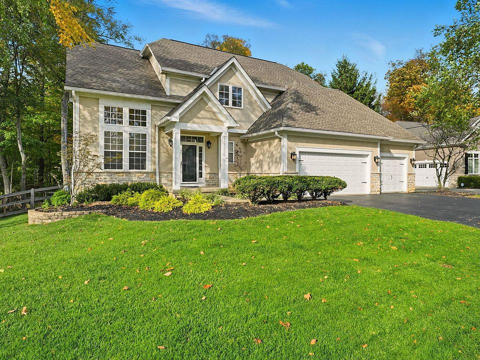 Welcome to 2715 Tucker Trail, situated on a private lot overlooking wooded green space in Lewis Center, OH, within the highly regarded Olentangy School District. Located minutes from Alum Creek, Hoover reservoir, Polaris, healthcare, restaurants, country clubs, and parks. Offering 3554 sf of finished living space, this 4 bedroom, 3.5 bath (auditor's site is incorrect) has brand new carpet and fresh paint throughout. Tall ceilings and large windows bathe the space in natural light and frame serene views of the large fenced (w/invisible fence) lot and wooded green space. Upstairs you will find the large primary suite w/huge closet and private bath, 3 additional bedrooms, and a full bathroom. Fully finished WALK OUT LL with a secret playroom, bar, fireplace, and built-in shelves is a perfect place to relax and gather with friends. Sliding glass doors open to a covered concrete patio for add'l outdoor living space under the huge deck above. Huge 3 car garage with hot and cold-water spigots.