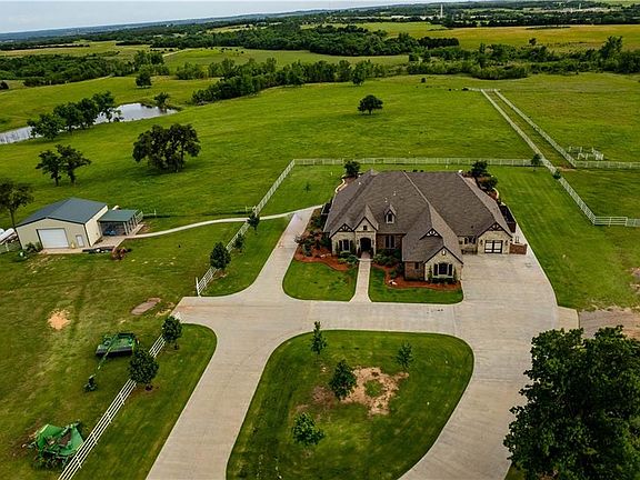 This pristine 160 acre farm in Payne county has everything you need! On the hill overlooking the whole property sits a magnificent home completed in 2015. Every detail thought through and addressed. Sit on the upper deck in the evenings and watch the rise and set. Invite all your friends and family over for holidays and events with all the room you will have for entertaining. Whole home entertainment system including a movie room! The kitchen is a dream with 3 ovens, commercial wolf appliances, 2 dishwashers, new fridge, and double islands for prep work. The large master is expansive and has a built in safe room in the closet. The 160 acre has multiple structures including a 40x100 barn, 40x80 barn for equipment, and a 30x40 insulated shop. 3 ponds on the property with one being spring fed. Completely fenced and cross fenced for rotational grazing and separating livestock. Pipe fencing and corrals (all built with efficiency in mind), multiple pens for working cattle which are complete with a squeeze chute and scale under roof, along with curved crowding pen and cat walk-on a concrete floor. As you enter the property through the automatic gates you are welcomed with a large circle drive and plenty of room for parking.