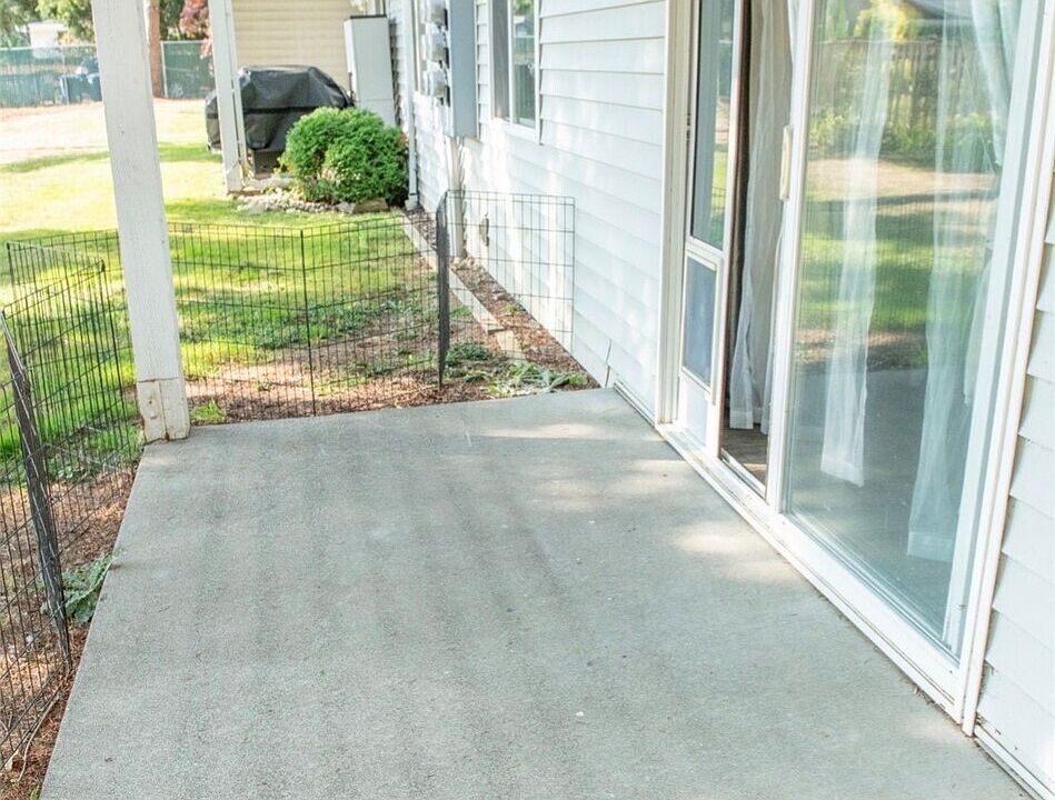 This nicely updated 2-bedroom, 1-bathroom condo offers low-maintenance living in a convenient location. The modern kitchen features stainless steel appliances, a stylish tile backsplash, and custom light fixtures—all included. Step from the cozy living room onto your private covered concrete patio, overlooking a shared fenced backyard—perfect for relaxing or entertaining. Includes one designated parking space. Ideally located near I-5, Bakerview, Meridian, and just minutes from downtown.