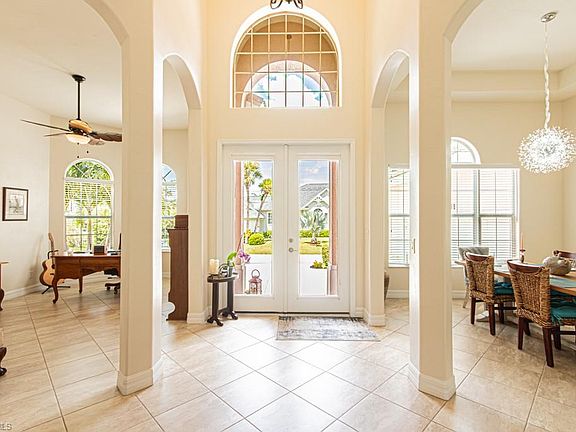 Waterfront Oasis in Bonita Springs – Gulf Access Pool Home on a Quiet Cul-de-Sac. Discover the ultimate Southwest Florida lifestyle in this beautifully maintained 4-bedroom + den, 3.5-bathroom single-story home located in a sought after area of Bonita Springs. Spanning 2,715 sq. ft. under air, this light bright and airy residence features an ideal layout with split floor plan, soaring ceilings, spacious living room with pillars, open dining room, den and granite countertops throughout. The spacious kitchen has plenty of storage, stainless steel appliances, a center island and breakfast bar. There is also a breakfast nook overlooking the pool, a walk in pantry and large laundry room with sink. The home has a side entry 3-car garage for all your storage needs. The spacious primary suite with seating area has two walk-in closets, dual sinks, a roman tub and separate shower. The 2014 custom home has excellent elevation just shy of 11.00ft with no history of flooding. Step outside to your private paradise: a resort-style screened in heated pool and spa, outdoor dining area and landscaped backyard overlooking your own boat lift and tranquil canal views. You're just a couple of homes away from the Imperial River, offering Bay and Gulf access for boating and water adventures. Pet friendly community with no HOA. Enjoy the peace and privacy of waterfront living while being just minutes from it all—beautiful beaches, upscale shopping, fine dining, movie theaters, parks and schools. The Promenade at Bonita Bay, Coconut Point Mall, I-75, and Fort Myers International Airport (RSW) are all conveniently close, making this an ideal full-time residence or seasonal retreat. Don’t miss this rare opportunity to own a slice of paradise in one of Bonita Springs’ most desirable locations! AGENTS PLEASE READ CONFIDENTIAL REMARKS.