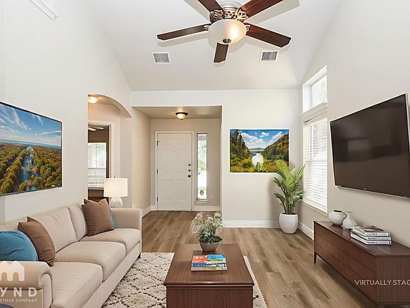 Welcome to 2716 Amberglow Ct, a charming 3-bedroom, 2.5 bath residence featuring 1542 square feet of living area. You're sure to appreciate this stylish and contemporary floor plan, which includes a roomy living room with high ceilings and a ceiling fan. The kitchen is well-appointed with ample countertops, white cabinets, a pantry, backyard access, and modern appliances. The primary bedroom boasts a walk-in closet and an en-suite bathroom. Outside, the fenced backyard provides a wonderful space for relaxation and entertaining. A 2-car garage is available, and a dryer is included. This home is conveniently located near shopping and dining options, with easy access to I-35 and E Palm Valley Blvd. Don't miss out, apply today to make this fantastic property your new home!