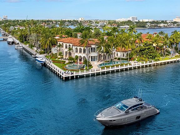A rare opportunity to own one of Las Olas’ most exceptional point lot estates, offering an impressive +/-330' of prime water frontage, perfect for mega-yacht dockage & panoramic views of the Intracoastal. This Affiniti Architects/Sarkela Corp masterpiece sits on over half an acre, blending timeless architecture & only the finest of finishes w modern amenities. Inside find elegant marble flooring, grand entertaining spaces & water views from every room. Designed for the true entertainer, the property includes a sauna, movie theater, expansive garage, resort-style pool/spa, summer kitchen & expansive outdoor covered living areas surrounded by lush tropical landscaping. An extraordinary combination of land, water and craftsmanship, just moments from FTL Beach and Las Olas Boulevard.