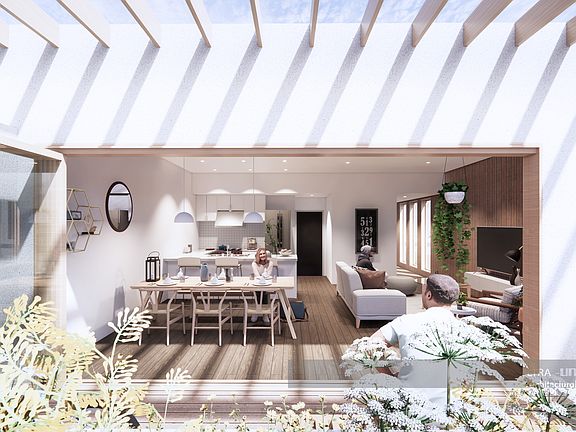 Approximately 1,500 sq ft combined indoor/outdoor living