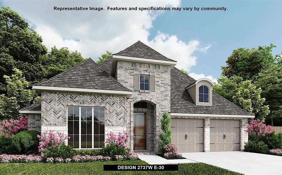 Home office with French doors set at entry with 12-foot ceiling. Game room with French doors off extended entry. Family room with a wood mantel fireplace and wall of windows opens to kitchen and dining area. Kitchen features walk-in pantry, 5-burner gas cooktop and generous island with built-in seating space. Primary suite includes bedroom with wall of windows. Double doors lead to primary bath with dual vanities, garden tub, separate glass-enclosed shower and oversized walk-in closet. A guest suite with private bath adds to this four-bedroom home. Covered backyard patio. Two-car garage.