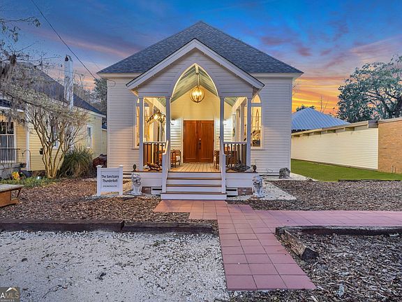 A rare gem, this historic church, c. 1902, has been masterfully reimagined into an extraordinary architectural masterpiece. Once a simple clapboard Southern-style church, it is now a breathtaking 4-bdrm luxury residence. Honored with Historic Savannah's 2024 Preservation Award, the meticulous restoration preserved the church's original character while integrating a sleek, contemporary addition. Inside, The Sanctuary offers an expansive open-concept living space, bathed in colorful light from the towering stained-glass windows. At its heart is a state-of-the-art chef's kitchen, featuring an architectural pass-through design with seating on both sides. The modern addition is a serene retreat with a den, 2 downstairs bedroom suites, and 2 upstairs suites, each with luxurious baths. Step outside to a sprawling private backyard, perfect for entertaining under a majestic ancient oak. Nestled in Thunderbolt, a walkable riverfront community-a heavenly retreat in Savannah's coastal paradise!