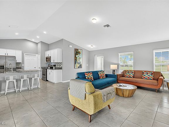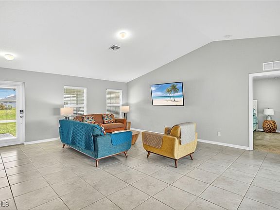 Welcome to Paradise in Cape Coral! Discover this like-new home, perfectly positioned in one of Cape Coral’s most sought-after neighborhoods—surrounded by stunning Gulf-access homes. Enjoy peaceful streets, palm-lined views, and the refreshing coastal breeze that define true Southwest Florida living. This 3-bedroom, 2-bath residence with a 3-car garage showcases exceptional craftsmanship and modern style. The open-concept design features cathedral ceilings, a center-island kitchen with granite countertops, soft-close cabinetry, and stainless steel appliances—ideal for entertaining or everyday comfort. The spacious living area flows effortlessly to a large under-truss lanai, the perfect spot to unwind and take in the tranquil surroundings. Notable features include: Lenox 14 SEER high-efficiency A/C system, PGT Low-E insulated windows, Moen plumbing fixtures, 18” tile flooring in main living areas, Epoxy-coated 3-car garage floors, Stone accents on front elevation.