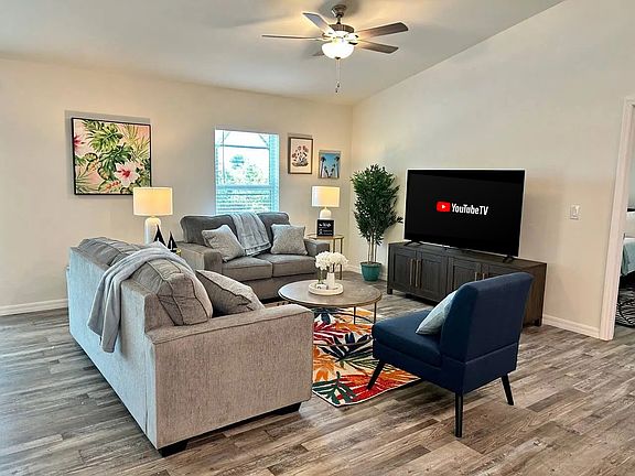 Escape to your own private paradise in this stunning 4-bedroom, 3-bathroom home on a picturesque canal in Cape Coral. This beautiful property is designed for ultimate relaxation and family fun, offering the perfect balance of cozy comfort and breathtaking luxury. Whether you're here for a relaxing getaway or a fun-filled family adventure, this home provides everything you need to unwind and make unforgettable memories.