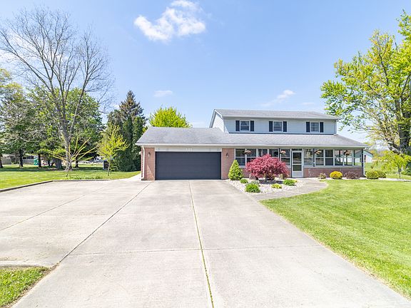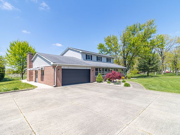 Hard to find, 4 bedroom, 2.5 bath home, with full unfinished basement, sitting on 5 acres! You'll love the 35x11 enclosed front porch! Wonderful 23x12 covered back porch for relaxing & enjoying your view! Huge 54x72 pole barn with 3,888 sq ft, asphalt floor & electric! Basement has a utility, laundry & open area with tons of storage space. Per the seller, there is a 6" unperforated tile that runs from the sump pit out into the field. Recent vinyl tilt-in windows on the main level. Whole house generator & recent ductwork in the basement. Recent fireplace insert and new doors in the family room leading to the back yard & garage. New sidewalk on the south side of home. Seller had 18" of insulation blown in the attic. Main level has a heat pump for heat & AC and is connected to the natural gas furnace. Smaller outside AC unit is for the upstairs & located in the attic. Upstairs has baseboard heat. Great home! MUST SEE!