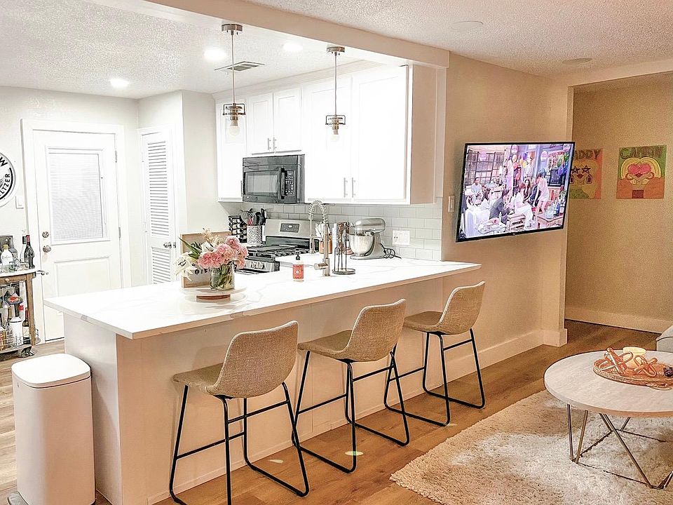 COMPLETELY REMODELED 4 bed/3 bath home available just minutes from TCU Campus and walking distance to Bluebonnet Circle (great for shopping and dining)!! New flooring throughout, new kitchen cabinets with GORGEOUS quartz countertops, stainless steel appliances, all 3 bathrooms completely remodeled with new tile, countertops, toilets, and showers. Main house has 3 bedrooms/2 bathrooms, with a brand new garage apartment in back, which features a large bedroom and spacious open living area. Large lot with attached deck and spacious fenced backyard, 1 car garage parking, with 2 covered parking spots in back. Comes with a refrigerator, dishwasher, gas stove, microwave, garbage disposal, and full-size stacked washer/dryer.