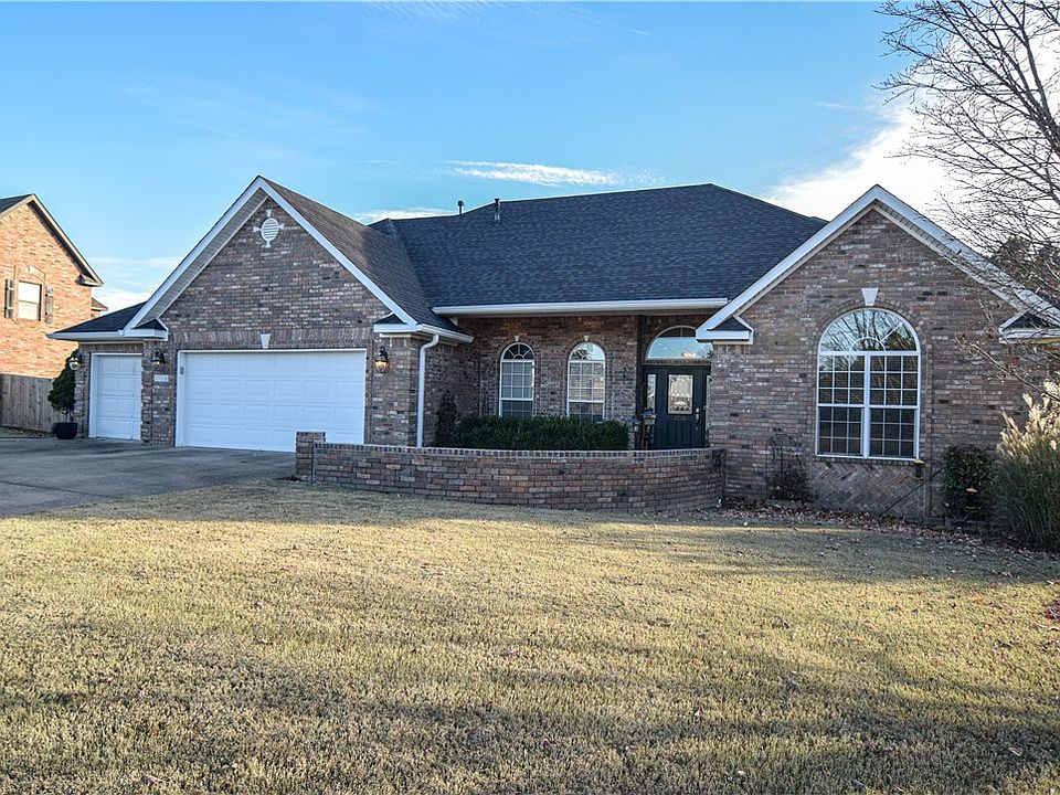Southern Trace home in Rogers just off New Hope Rd. This home features a landscaped yard with pond, fire pit, large deck and 2 sheds. The master bedroom has doors that flow onto patio deck. Master bath features a whirlpool tub, dual vanities and large walk-in closet. Bedrooms 2 and 3 share a Jack & Jill bath. Large eat-in-kitchen with center island and 2-sided fireplace. Other features include a 3-car garage, new gutters with leaf guard, new Seer 18 AC unit, new furnace and new hardwood flooring. Home is close to Mercy Hospital, I-49, Promenade, bike trails. Minutes to new Walmart HO and downtown Rogers.