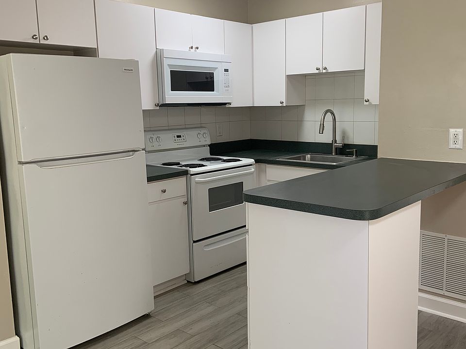 All tile flooring throughout, marble tile in bathroom and new bathroom vanity. New microwave over stove.