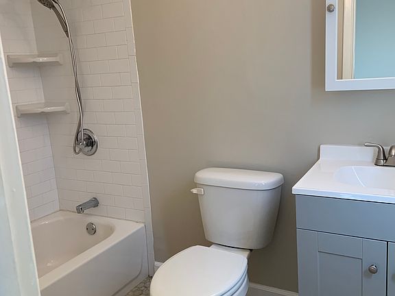 Small fenced in backyardMarble tile in bathroomOwn drivewayNew bathroom vanity