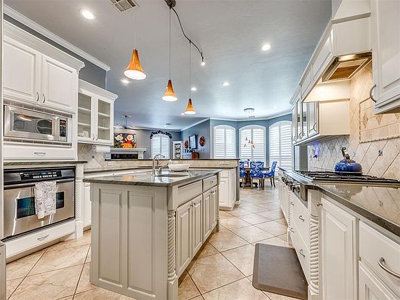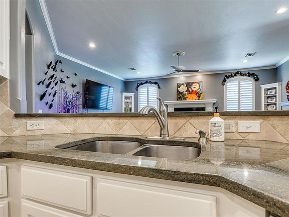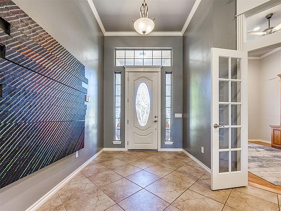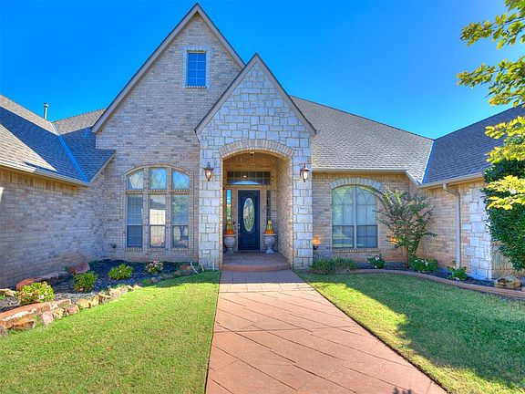 Welcome to this stunning one-level home in Edmond’s sought-after ThornBrooke Addition of Edmond, offering 4 bedrooms, 3.5 baths, 2 dining, 2 offices, bonus room, theatre room and a spacious three-car garage on .38 acre lot. Designed for both comfort and entertaining. The gourmet kitchen is a chef’s dream, showcasing granite countertops, a large island with prep sink and pendant lighting, breakfast bar, newly painted custom cabinetry with brushed nickel hardware, modern lighting, and high-end stainless steel appliances including a six-burner Jenn-Air gas cooktop, built-in oven, microwave, and dishwasher. The open layout is highlighted by soaring ceilings, double crown molding, plantation shutters, new paint, and elegant under-cabinet lighting. The luxurious master suite offers a generous sitting area, spa-like bath with jetted tub, double vanities, a tiled shower, and a 12’ x 10’ walk-in closet with custom built-in drawers. Three additional bedrooms are thoughtfully arranged on the opposite side of the home—one with an adjacent bath and two connected by a Jack & Jill. Every bedroom features a ceiling fan, adding to the comfort of the nine fans throughout the home. Outside, enjoy a private fenced backyard in a highly regarded Edmond school district. With its blend of style, function, and thoughtful details, this home is truly move-in ready. Easy commute to I-35 and Turnpike, Mercy Edmond, eateries and shopping.