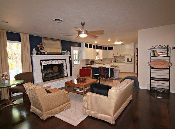 Very open concept-has been re-done; living areas have hardwood floors; den area has nice cozy fireplace; kitchen is white & cabinet doors have been replaced; HVAC has been replaced. Gorgeous backyard with sprinkler system; you will love this--finally a home with character. Close walk to park.