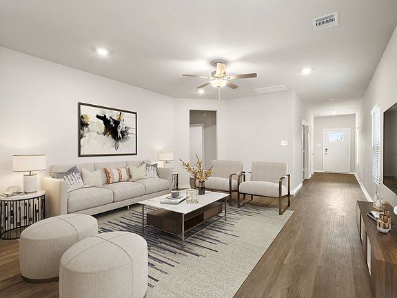 Welcome to your perfect family home at 2717 Bluebonnet Ridge Drive in Westridge Cove! This beautiful 1,532 sq. ft. residence offers 4 bedrooms, 2 baths, and a 2-car garage, all conveniently located on one level. Designed for comfort and style, this home features an open in-line kitchen layout with Madison Linen cabinets, premium Omegastone countertops, and an elegant Dillon sink. The primary suite includes dual sinks and sophisticated finishes. Outside, enjoy a covered patio and tasteful exterior with Huntington brick and Greek Villa trim. This home combines function and style in a prime location.