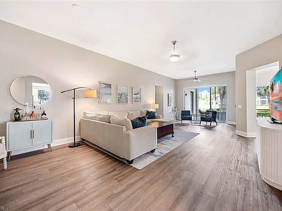 Welcome home to your spacious 2,500 sq. ft end-unit home in the highly sought after Fiddler's Creek gated community! Enjoy resort-style living in this beautifully furnished, First Floor, 3-bed/3-bath/2-car garage, end unit coach home. The bright living area features plenty of natural light due to the sunny western exposure. Relax on the screened lanai and catch gorgeous sunsets overlooking the serene lake. The spacious kitchen features granite counter tops, new stainless steel gas cook top, microwave and dishwasher, and a breakfast nook that opens to a formal dining room. Walk down the street to the nearby community pool. Optional Fiddler's Creek Social Club membership available (Golf not included) with a one-time $750 transfer fee which includes access to Fiddler's Creek Club & Spa, including a resort-style pool with waterfalls and waterslides, poolside service, lap pool, world-class fitness center w/personal trainers, saunas, steam rooms, and a full-service spa. If you're feeling active, take advantage of the tennis, pickleball, & bocce courts. Enjoy the outdoors w/ miles of walking & biking paths that wind through the well-maintained grounds, providing endless opportunities for recreation and relaxation. Conveniently located 1 mile from a Publix supermarket, 13 miles from downtown Naples, and only 7 miles from Marco Island and the finest white sand beaches SWFL has to offer!