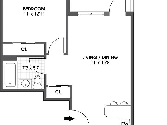 Apartment offers high ceilings, hardwood floors and oversized windows.