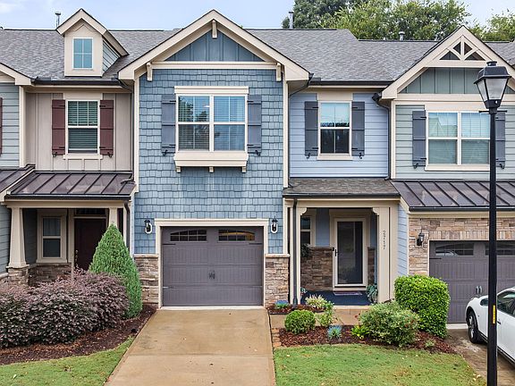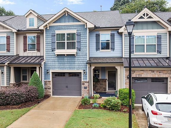 Experience golf course living at its finest at 2717 Cypress Point Lane. This beautifully appointed Craftsman townhome sits at the end of a quiet street and sits on the 7th green of Wakefield Plantation golf course, offering serene views from three separate outdoor living spaces—including a spacious deck and screened porch on the lower level, and a private covered patio off the primary suite on the second level. Inside, rich hardwood floors, elegant crown molding, and an inviting fireplace set a warm, refined tone. The gourmet kitchen features off-white cabinetry with abundant storage, granite countertops, stainless appliances, and a walk-in pantry. Upstairs, the oversized primary suite impresses with a tray ceiling, porch access, and spa-inspired bath. Two additional bright bedrooms and a walk-in laundry room complete the upstairs level. A finished garage with shelving and epoxy flooring adds exceptional functionality. Located on a quiet cul-de-sac-like street just steps from the Wakefield Trail/Capital Area greenway. Recent upgrades throughout, plus a tankless water heater for added efficiency. Upgrades completed since current owners purchased include crown molding added throughout (2023), garage finished with extensive shelving, epoxy flooring and painted walls/ceiling (2023), exterior paint (2024), interior paint (2024), and deck re-finished (2025). Seller offering one year Home Warranty for added peace of mind.