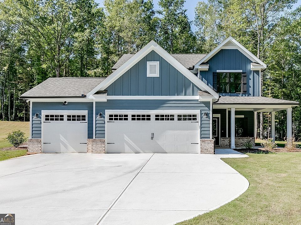 The Yargo Plan built by Expo Homes. Experience the OBIE award winner for building excellence for new construction awarded in 2022! This large estate-sized lot of 1.5 acres is in the middle of the tranquil countryside yet minutes from the convenience of dining, shopping and more in Monroe, Winder and Athens, GA. Enjoy all the recreational activities of nearby Ft. Yargo state park.(Minutes away!) This gently sloping sodded front lawn leads up to the beautiful farmhouse styled home. Enjoy the woods from the covered back porch. There's the added practicality of a third car garage. Standout features include 9ft ceilings with crown molding standard throughout the main level. The fireplace in the spacious family room is accessorized with shiplap and a cable outlet. This open floor plan continues into the expansive kitchen featuring granite countertops, undermount sink in the kitchen island, stainless steel appliances, subway tile backsplash and complemented with classic white cabinetry. The main level also features a secondary bedroom with a full bath. Practical, easy to clean yet beautiful LVP plank flooring adorn all the common areas on the main level. Upstairs, the primary suite features a large trey-ceiling BR with a spacious bathroom that includes a tile surround tub, tiled shower with framed glass shower door, granite countertop double vanity and a ample-sized walk-in closet. Granite countertops are standard for the secondary baths. The two generously sized secondary BR's upstairs also feature large closets. The laundry room is also conveniently located upstairs. Come and see us today! Quick Move-In! Bring All Offers!