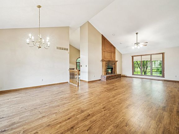 One of the original homes in Beacon Hill, this one owner ranch is tucked away on a quiet cul-de-sac and is now waiting for you. Spacious and well-maintained, this 3-bedroom home features a sitting room off the primary suite which could also be used as a library, office nursery, or a 4th main floor bedroom. The large living and dining rooms have beautiful wood floors and vaulted ceilings plus a gorgeous brick front fireplace with a lovely mantle as the focal feature of the room. A bright kitchen with a cozy hearth room shares the 2-way fireplace with the living room. The kitchen has a large center island, tile flooring, and includes all appliances. There is a main floor laundry and half bath off the kitchen for added convenience. An additional 2000 square feet of space is available for finish in the basement. There is already a half bath installed down here and rough-in is available to add a tub or shower. Enjoy peaceful views with no rear neighbors—this home backs to a common area and a scenic pond. All windows were replaced in 2016 along with the front sidewalk, deck, and some siding. Two new sump pumps were installed in April 2025.
