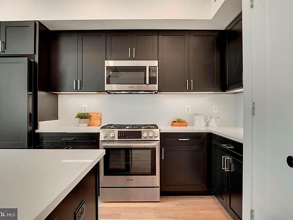 Built in 2020, this top floor 2 bedroom, 2 bath apartment features Engineered Tradewinds Oak Hardwood Flooring throughout the Living Areas, Shaker-style Kitchen Cabinetry with Chrome Hardware, Culina High-Arc Kitchen Faucet with Dual Spray, Weatherford 2-Light Dome Island Pendant Lighting, Modern Stainless-Steel Bosch Appliances with French Door Refrigerator, Quartz Artic White Counter Tops and Backsplash, and Blanco Lighting Fixtures. The bathrooms feature Carrara White Marble Bathroom Vanity, and Donchez Calacata White Porcelain Floor and Wall Tile. Thoughtfully designed floor plan and hand-crafted millwork uplift this boutique development into an architecturally stunning masterpiece. Innovative design seamlessly blends the interior landscape with appealing sight lines, providing a spacious, yet tasteful oasis. Large windows invite natural light that find all corners of your home, while the outdoor space complement your desire to entertain. For you cooking enthusiasts, a dual fuel range and expansive countertops will meet all of your needs. Closely located to the activities of Adams Morgan while still maintaining the neighborhood feel. Discount available for 18 month or more lease. Renter pays for electric, gas, and internet connection. Water is included in rent.