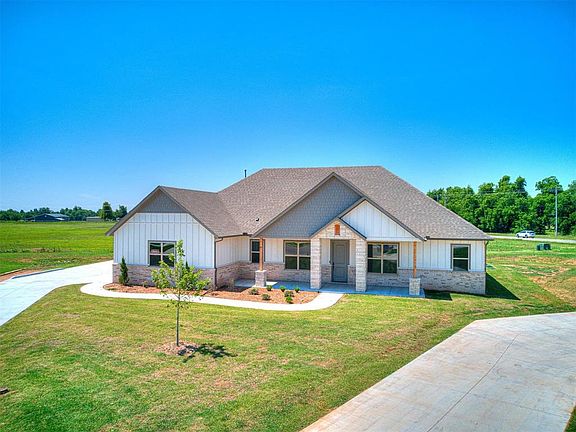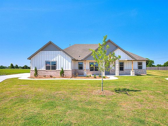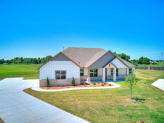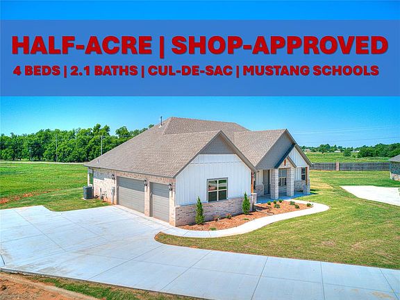 A HALF-ACRE HOME, SHOP-APPROVED NEIGHBORHOOD IN THE MOST PERFECT LOCATION FOR YOU IN MUSTANG SCHOOLS! Minutes away from I-40 & Kilpatrick Turnpike, about 20 minutes from Downtown/Bricktown and accessible to all the amenities of the booming Garth Brooks Blvd -- this 4beds|2.1baths|3cars CUL-DE-SAC LOT HOME will amaze you! This beautiful home boasts of a convenient split layout for privacy. Huge covered front porch is perfect to enjoy the outdoors at the convenience of your own home! A mini foyer will greet you as you enter the home which will also give you access to the formal dining. Open concept living area features a corner fireplace, huge windows for natural lighting, gleaming flooring that flows to the breakfast area and kitchen. The gorgeous kitchen features built-in appliances, double oven, plenty of cabinetry for storage, granite countertops and a walk-in pantry! Homeowner's Suite is huge with primary bathroom that has 2 separate sinks, large soaker tub, walk in shower and a massive closet! Covered back patio is ideal for your family hang-outs or BBQ nights with friends. Home is in close proximity to major medical facilities, restaurants, shopping, theater, fitness and entertainment areas of Yukon! BEDFORD FLOOR PLAN, WELCOME HOME!