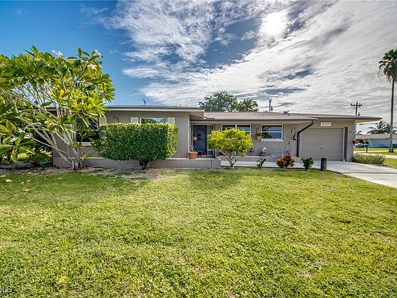 Seize an opportunity to own a charming single-family home perfectly positioned on a desirable corner lot in the heart of Cape Coral. This 3-bedroom, 2-bathroom residence is nestled within a highly convenient and central location, residing in a well-established neighborhood that benefits from the ambiance of nearby waterfront homes. Convenience defines the lifestyle here; shopping, dining, and vibrant entertainment are right around the corner, complemented by quick access to major roads like Del Prado Blvd and Veterans Pkwy. This property has been well maintained and updated: new roof from 2022, was replumbed in 2014, and features a 7-year-old AC system, including updated ductwork and returns, alongside newer appliances. ASSESSMENTS ARE PAID IN FULL removing significant financial uncertainty for the future owner. The practical interior features tile flooring throughout for easy care, a spacious living area, a kitchen with attractive wood cabinets, and a large sunroom with sliding glass doors opening to the private backyard. This generous outdoor space offers ample room and potential for future enhancements such as installing a custom pool, designing an elaborate outdoor living area, or pursuing expansion. Further elevating the location, Horton Park & Boat Ramp is situated just up the road, providing immediate access to the Caloosahatchee River for boating enthusiasts, walking trails, picnic shelters, and a community playground with scenic views. NO FLOODING DURING ANY OF THE PAST HURRICANES!