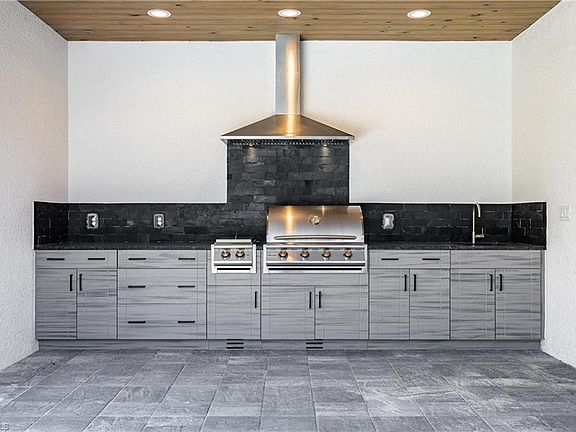 Beautiful new construction home in the highly desirable SW crown jewel section of Cape Coral! Located just off Sands Blvd and Cape Coral Pkwy, this home features 3 Bedroom with Den 3 Bathroom and 3 car garage is full of personality and features, boasting wood look tile floors throughout, custom cabinetry, tongue and groove stained exterior ceilings, large master suite with an oversized walk-in shower/tub wet area and glass enclosure, double vanities, open walk-in closet and guest bedrooms as well as a spacious lanai under truss with a fully built in outdoor kitchen including gas grill and side burner. Oversized pool and paver deck area under screen, paver driveway and walkways. Stainless steel appliance package in the custom kitchen with shaker style cabinets, granite and crown molding overlooking a large great room with soaring ceilings featuring stained decorative beams.