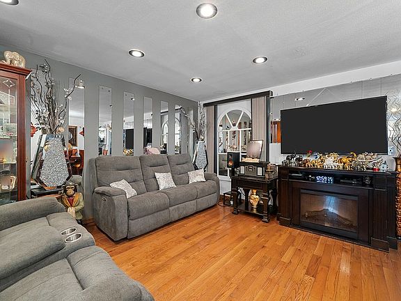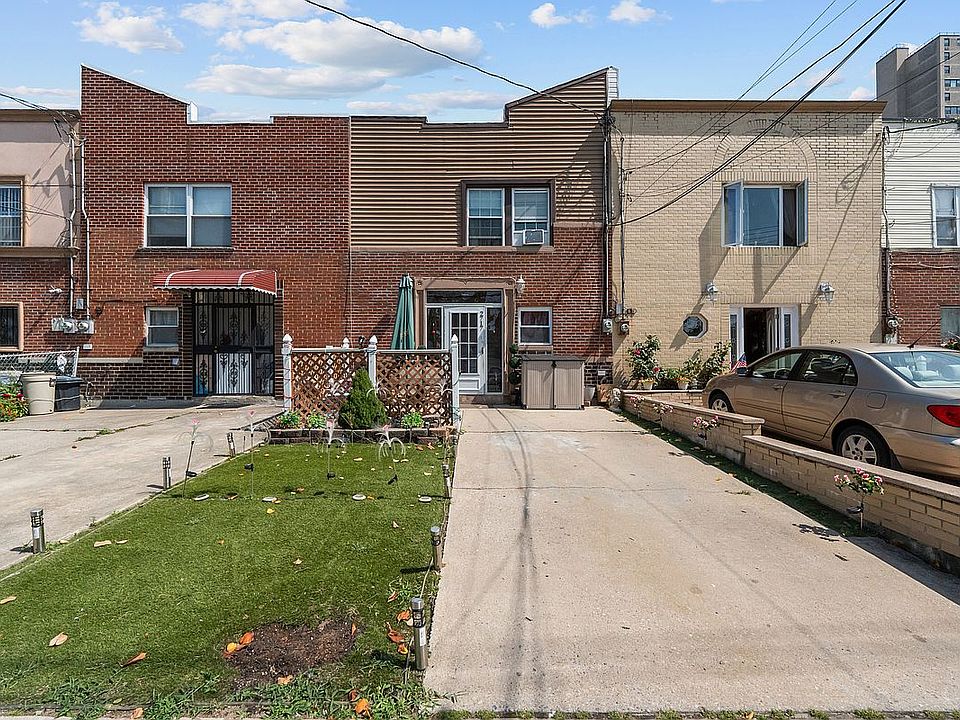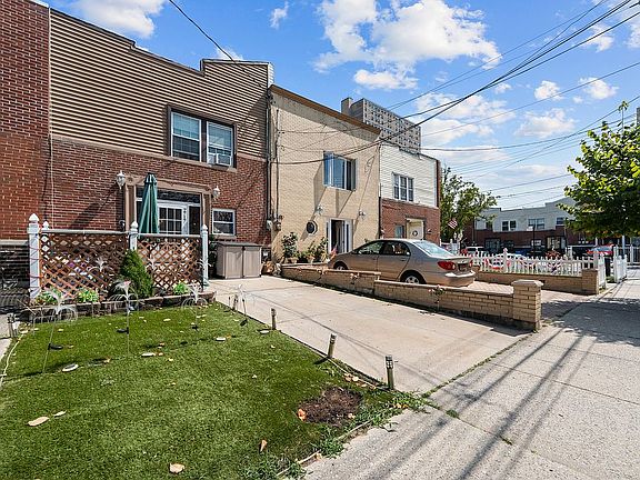 Immaculate attached single family home nestled on a quiet tree lined block in prime Coney Island. The classic brick facade is accented with warm siding on the upper level, decorative carriage lights, and a screened entry with a security door. A private driveway provides off street parking and is flanked by a low brick planter wall with seasonal flowers. In front, a neat turf lawn and a small fenced sitting patio with lattice detail create a welcoming approach and easy care curb appeal. Inside, the main level begins with an entry foyer with direct access to a bath and a dedicated laundry room. From the foyer, the main level opens to the kitchen, dining area, and living room, so daily life and entertaining connect easily. The dining area sits under a crystal chandelier and holds a full size table. The living room features warm wood floors, recessed lighting, a tall mirror accent wall that brightens the space, and an electric fireplace with a wide mantel and a wall mounted television above it. The kitchen is arranged in a practical U shaped layout with long granite counters that wrap into a raised serving bar facing the dining area. Cabinetry is white with raised panel fronts and polished hardware, plus a glass front display corner cabinet for stemware. A multitone mosaic tile backsplash ties the room together. Stainless steel appliances include a gas range, an over the range microwave, a dishwasher, and a French door refrigerator with water and ice. The sink sits at the peninsula with a dark composite basin and matching faucet. Lighting is abundant with recessed ceiling lights and a ceiling fan light. Flooring is large format marble look tile set on the diagonal with a contrasting diamond inset. The peninsula base is trimmed with picture frame molding in soft gray that echoes the living area. Just beyond the dining area a central hall serves two main level bedrooms. Each bedroom has laminate wood floors, neutral walls, and a window for natural light. One room is shown with a mirrored armoire and dresser. The second presents a clean layout with a recessed ceiling light and electric baseboard heat. The hall continues to the family room at the rear. This generous secondary living space features ceramic tile floors, soft blue walls, recessed lighting, and a full wall of glass with vertical blinds. Double glass doors open directly to the deck and backyard for easy indoor to outdoor flow. A long tiled hallway connects this space back to the kitchen and dining area. Upstairs a bright hall links three additional bedrooms with ample closet space in each room and a well-placed hallway bathroom. The two secondary bedrooms offer simple rectangular layouts with wood look floors and large windows for steady daylight, while the primary bedroom is set privately at the rear and serves as a calm retreat with wood look floors, multiple mirrored closet doors, a ceiling fan, and wide windows dressed in sheer panels for soft light. A green accent wall and a mounted light add warmth while leaving ample wall space for a full bedroom set. Double doors from the family room step onto a wide plank wood deck framed by white railings with post caps and currently styled with string lights. The deck holds a full size outdoor dining set plus extra side tables and planters with room to spare. Steps lead down to a paved patio that works for a grill station or added seating. Beyond the patio a level lawn runs the width of the lot and is fully enclosed by low maintenance white vinyl fencing for privacy and pets. The yard is currently shown with a play set and a storage shed along the rear edge for tools and seasonal items. Open sky views keep the space bright through the day, and the combination of deck, patio, and grass creates clear zones for dining, play, and relaxation. An exceptional opportunity to make this remarkable home yours. SHOWINGS BY OPEN HOUSE ONLY. NO PRIVATE VIEWINGS. Brokers may send buyers to the open house. Info deemed reliable not guaranteed.