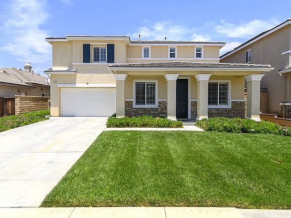 Every REX home comes with a 30-day buyback guarantee. Terms and conditions apply. Schedule your appointment with REX for a same day showing. Gorgeous 5 bedroom, 3 bath home with 3218 square feet in Moreno Valley! An open layout adds an expansive feeling to the space, and the living room offers a gas fireplace, tile flooring, a ceiling fan, lots of windows and a large sliding door with plantation shutters. The updated kitchen features granite counters, tile floors, recessed lighting, a large center island with counter seating and wood cabinets. All of the bedrooms are light and bright with great closet space, and the master includes a walk-in closet and en suite bath with dual sinks, tile floors, separate tub and shower, smooth surface counters and ample storage space. Central AC. Separate laundry room. Plantation shutters are on all windows throughout the house. Plenty of storage inside and a three-car attached garage. There is a large covered patio and landscaping includes a guava tree, rose bushes and front and backyard sprinkler systems. Rock Ridge Park is situated within the community and there are trails close by. Conveniently located near shopping and restaurants. So many wonderful features inside and out. Make this your next home! Schedule a showing with REX today!