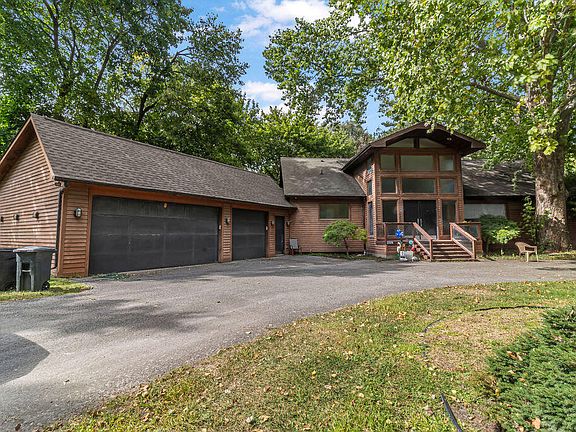 The main level features vaulted ceilings, skylights, and river views from every room, each with direct access to the deck that spans the length of the home. Additional amenities include an attached three-car garage, three fireplaces, a large primary suite with dual walk-in closets, plus a bonus room, en suite in all four rooms. The deck and built-in spa set the stage for a true riverfront retreat.
