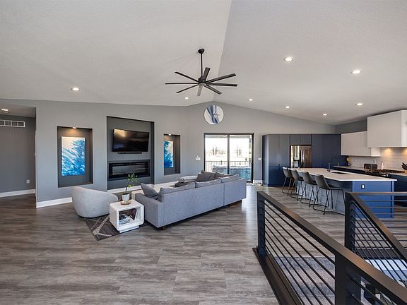 Welcome to this stunning modern home in the highly desired neighborhood of Kenyon Hill Ridge, with Van Meter Schools and easy interstate access! Situated on just under 1.5 acres of beautifully landscaped grounds, this expansive property features 5 spacious bedrooms and 3 luxurious bathrooms, offering ample space for family living and entertaining. As you step inside, you will immediately notice the open-concept design with high ceilings and large windows that flood the home with natural light. The kitchen offers the perfect amount of space, with a large island perfect for entertaining. On the main level, you will find 3 bedrooms, including the primary bedroom with en suite and walk-in closet. Downstairs you will find 2 more bedrooms, flex space, large family room and a beautiful bar. Additionally, for those looking to stay active, this home offers the ideal space to work out in the comfort of your own home. Outside, ample landscaping has been done for you, just add your own personal touches to make it exactly what you want it to be. You will also see the 30x50 concrete slab and basketball hoop, perfect for family recreation and some pickleball! The driveway has been expanded to the east of the home for extra parking. Garage heater has been added, irrigation, whole home water filter, water softener are all taken care of. This home combines luxury, convenience, and lifestyle, offering everything you need to live, work, and play!