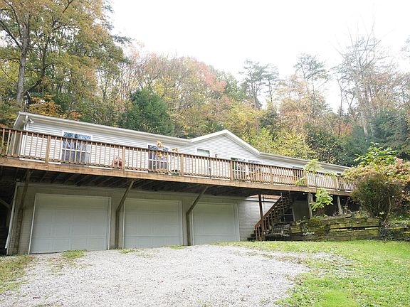 Showings begin November 5th. Property includes two homes. A 4 bedroom, 3 full, 1 half bath ranch modular home w/ attached 3 car garage AND a 2 bed, 1 full, 1 half bath cottage with full kitchen and laundry. IMMEDIATE INCOME POTENTIAL! All this on nearly 12 glorious acres with a large amount of road frontage and backs to state forest. Nature filled paths and rock formations. Main home is open & spacious with vaulted ceilings and new carpet on the first floor. Enjoy a cozy fire with the wood burning fireplace in the family room. Owner suite with garden tub and shower. Nearly 12 acres and abundance of nature can be viewed from the home's deck that wraps around the entire home or venture out to the paths to view fall foliage and large rock formations. This home will not disappoint.