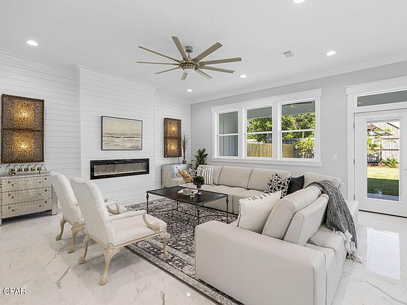 SENSATIONAL, STUNNING, BRAND NEW!! This custom two story home is ready for it's first owner! Boasting 4 bedrooms, 3 bathrooms, over 9'-10' ceilings, marble look ceramic tile floors, brushed nickel hardware, crown molding, tray ceilings, wainscoting, a bright neutral color palate and nearly 3,000 sqft of a breathtaking floor plan! The pristine kitchen showcases Calacatta Bravos quartz countertops, two-toned shaker stye soft close cabinets, a T-shaped island perfect for a dining space, a large walk-in pantry and a Samsung stainless steel appliance package! The spacious living room flaunts a shiplap accent wall with an electric fireplace. The first floor bedroom can double as an office space. Upstairs, 2 more bedrooms, a full bathroom, a loft and the Master Retreat and Ensuite of your dreams!! For the owners, you have an oversized bedroom with large windows that allow a flood of natural light, tray ceilings and extra space for a seating area or office. The spa like ensuite bathroom captivates with seamless glass shower doors, a double vanity, separate storage area with glass shelves. All bathrooms feature custom porcelain tile patterns, shaker style soft close cabinets, the same quartz countertops and Delta plumbing fixtures. The fully fenced backyard is elegantly landscaped complete with a custom pergola over a paved patio along with a covered and semi enclosed outdoor living area. The home also features a brand new 4 ton Rheem HVAC, a 50 gallon electric water heater, a one year builder warranty, no HOA and is only 4 miles from Public Beach Access and St. Andrew State Park. This one-of-a-kind masterpiece will not be available for long so schedule your exclusive showing today!