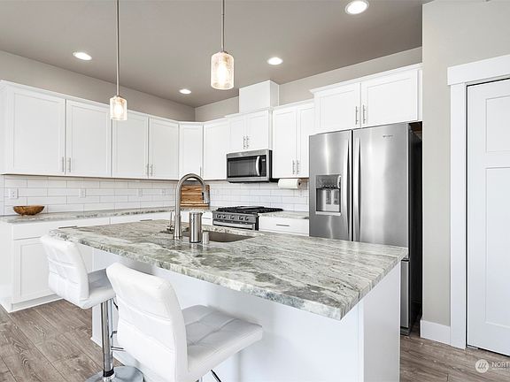 Welcome to the Meadows! As you step inside, you'll immediately notice the spacious + open floor plan, which creates a seamless flow between the kitchen, living room, and dining area. A bright + airy kitchen with elegant Quartz countertops, a large island - perfect for entertaining, soft close cabinets/drawers, and stainless steel appliances. The primary bedroom is a true oasis, featuring a large bedroom, elegant bathroom, large tiled shower, and an enormous walk-in closet. One of the best features of this home is the green space behind you, which provides a stunning and serene backdrop to your daily life. You'll have direct access to walking trails that wind throughout the neighborhood! Truly a show-stopper, you need to take a look!