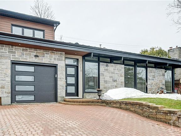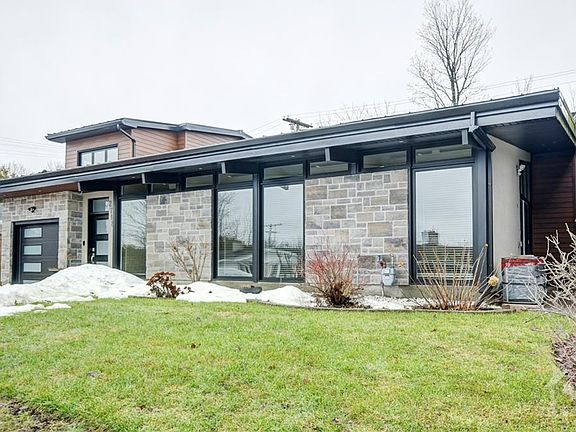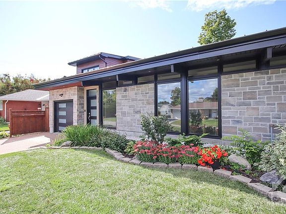 Stunning back-split exec/family home on a quiet street within 5 min walking distance of Mooney's Bay rec area beach. Quality upgrades inside and out. Kitchen built for a chef/entertainer with a 5 burner gas cook top and pop-up downdraft vent, built in convection oven. Exterior fully renovated (2019) with addition of 2" of insulation, maintenance free stucco, stone and steel siding, new metal roof and all new windows combines beauty and maintenance free living for years to come. Upper levels include a spacious master bedroom with walk in closet and two room en-suite spa/bathroom suite. A large conservatory has plenty of room for office/study space.Three beds and newer full bath on the first lower level with access to the basement recreation room/gym and large storage. A main floor rec room with wood fireplace, radiant in-floor heat leads to the private back oasis complete with deck and hot-tub.