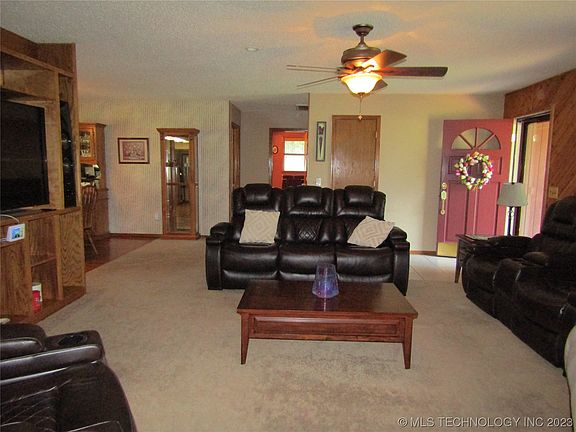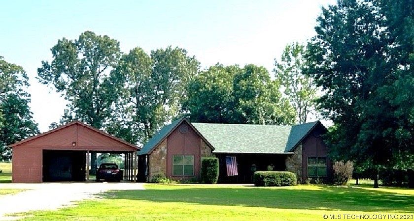 Beautiful home on 10+ acres just south of Hugo, Oklahoma and an hour from Beavers Bend and Broken Bow lake area. Come enjoy country living and still be close to amenities. Home sits back off the road with tree shaded back yard. Open living area features easy access to large dining space. Kitchen features lots of cabinetry and a nice built-in display cabinet to show off your pretty dinnerware. Floor plan offers split bedroom arrangement with primary bedroom on the east side of living area. Primary bedroom is ample size with full bath attached. West side of living area are two additional bedrooms and a full hall bath. If outdoors is your thing, you will be amazed at the back yard view of the additional acreage included with the property. (2 PARCELS INCLUDED IN THIS LISTING)