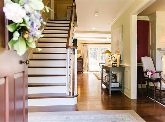 This bright & airy home has it all. Inside, the home has an open 1st-floor plan for both daily living and entertaining. Upon entering this magnificent home, immediately notice the wide pine floors, custom professional interior design finishes, and bright sunlight streaming in through many southern exposure windows. A custom-designed kitchen w/quartzite countertops, upgraded appliances, & separate eating area. Large butler's pantry with cabinetry topped by a natural maple wood counter. The living room is brightly lit w/wood burning fireplace. The guest bedroom, guest bath, & large family room opening to the patio round out the first floor. The 2nd floor offers an additional 3 bedrooms, 2 full baths, & large laundry room. The luxurious master suite was remodeled in 2019. Enormous basement, mostly finished w/wall to wall carpet, and powder room. Unfinished area offers room for storage & more. Professional landscaping offers the same class and beauty as the inside. Absolutely must-see!