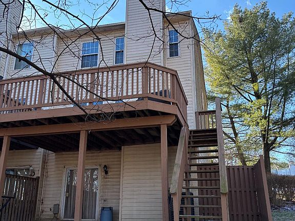 Spacious 3 level brick End unit townhouse. Largest model in the neighborhood. Includes a bright living room with bay window, a formal dining room, kitchen is open to family room with fireplace and has sliding glass doors to oversized deck with stairs. New kitchen floor and new Stainless Steel refrigerator. Upper level has 3 bedrooms all with vaulted ceilings and ample closet space and hall bath. The primary bedroom has an ensuite bath w/double vanity sinks and private toilet and separate shower. Huge lower level is fully finished with a walkout and includes a large utility room and storage. Backs to trees and community trail. Conveniently located to popular shops and dining, public transportation and great access to major routes like 29, I95, ICC/200.