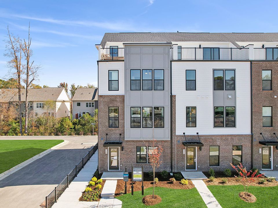 Introducing Stanley Martin's Hayworth plan on Homesite 74—an impressive 3-bedroom, end-unit townhome that blends comfort, style, and smart design. Soaring 10 ft and 9+ ft ceilings pair with expansive windows to flood every level with natural light. The open-concept main floor is a host's dream, showcasing a chef's kitchen with a generous center island, a sunlit dining area, and a spacious family room that opens to a private deck. On the entry level, you'll find a full bedroom and bath—perfect for guests, a home office, or a private retreat. Upstairs, the luxurious primary suite boasts a spa-inspired bath and walk-in closet, with an additional bedroom and full bath nearby. A 4th-level loft with a rooftop terrace offers even more space to relax or entertain, while the roomy 2-car garage adds everyday convenience. Located in Twyla Walk—just minutes from RDU Airport, downtown Cary, and everyday essentials—this home offers urban connectivity with the peaceful backdrop of the community's tree-lined setting. Don't miss out on this incredible opportunity and schedule a showing today!