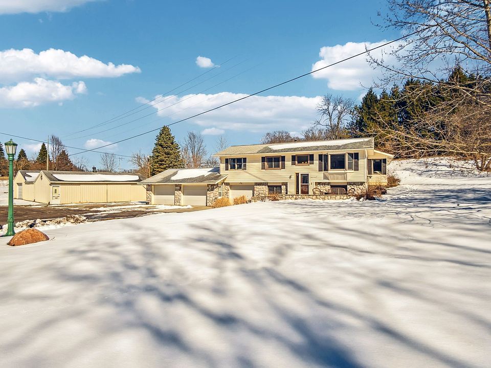 Looking for space – both land and outbuilding? Look no further than this beautiful, updated home on 4.52 acres with a large 2,400 sq ft. outbuilding AND a 3 car attached garage. One step inside and you’ll notice the gorgeous hardwood floors that flow throughout the main level of the home. Abundant windows and 2 skylights bring in a massive amount of natural light throughout the home. The three season room off the back is perfectly located to take in the view of the rolling property with abundant wildlife. Huge 11x23 primary bedroom with 2 closets. Many updates over the past 7 years, including: windows, deck, septic system, skylights, front door, water softener, furnace, electric panels (barn is on a separate meter), flooring, kitchen, bathrooms, lighting and trim.