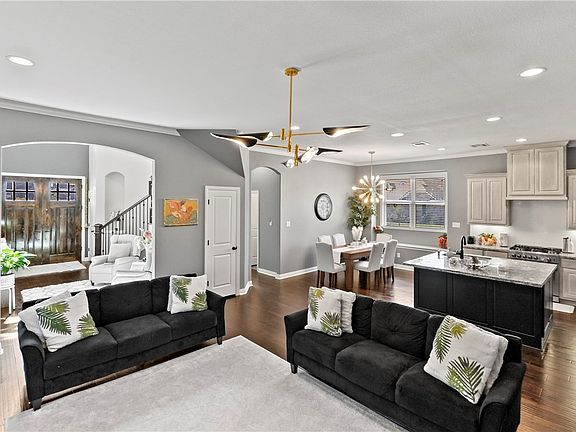 Experience refined living in this exceptional 4-bedroom, 3-bathroom residence, gracefully positioned on a prime corner lot in Castlegate II. From the moment you step through the grand entryway, you’ll be welcomed by an elegant winding staircase that sets the tone of the elegance of the home. The open and spacious floor plan offers a seamless flow between the formal living and dining areas, perfect for both everyday living and entertaining. The chef’s kitchen is a true centerpiece, featuring modern appliances, abundant cabinetry, and a large island that opens to the cozy family room. Step through the sliding doors into the bright and airy sunroom, where natural light pours in to create a tranquil space you can enjoy year-round. The spacious primary suite, conveniently located downstairs, provides a peaceful retreat with a luxurious bath and a generous walk-in closet. Upstairs, you’ll find additional bedrooms offering comfort and privacy for family and guests alike. Outside, discover your private backyard oasis complete with a sparkling pool, relaxing spa, and ample room for lounging or entertaining. Whether you’re hosting friends for a poolside gathering, this outdoor space is truly the best for unwinding. Thoughtfully designed for both relaxation and delight, this remarkable home offers the best of Castlegate II living. With its endless amenities and prime location, this property truly has it all. MUST SEE!