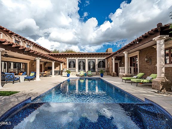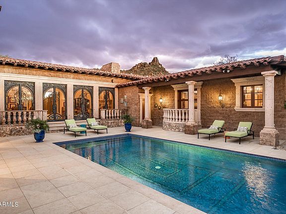 Discover your desert oasis within the gates of Estancia. This luxurious residence features block construction and southwest architecture that blends seamlessly with the stunning natural surroundings. The spacious interior boasts high ceilings, gourmet kitchen, and a serene primary suite with a spa-like bathroom. The large outdoor living space offers privacy and features a covered patio, built-in BBQ, and a sparkling pool and spa, Located in an exclusive neighborhood with easy access to golf courses, hiking trails and Scottsdale's vibrant amenities, this home offers the perfect blend of luxury and tranquility. Membership to the Estancia Club is separate and subject to application and approval. Approved applicants will likely be subject to a waitlist.
