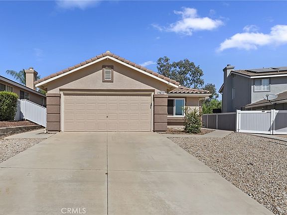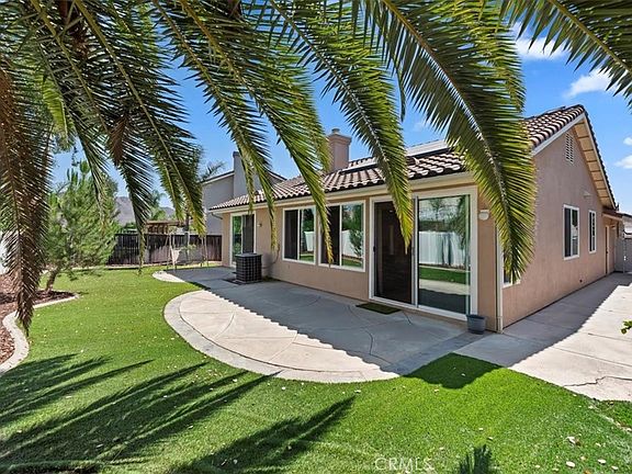 !!!PAID OFF SOLAR!!! Welcome to this beautifully maintained 3-bedroom, 2-bathroom single-story home, in the nestled in a desirable and vibrant Horsethief Canyon neighborhood with top-rated schools just steps away. This inviting residence features a spacious open-concept layout, a bright and airy living area, and a well-appointed kitchen with gorgeous granite counter tops and Stainless Steel appliance, perfect for entertaining or family meals. Enjoy the ease of single-level living with generously sized bedrooms and a serene primary suite with a sliding door for easy backyard access. All windows have been replaced by DUAL PAINE VINYL WINDOWS adding to even more energy efficiency. Step outside to a private backyard retreat, ideal for relaxing or outdoor dining. Very low maintenance yards to free up your weekends! Enjoy all the community has to offer with a very low HOA and no mello roos tax. Located in a well-established community offering fantastic amenities including a sparkling community pool, multiple sports courts, and club house. Whether you're enjoying an active lifestyle or seeking a family-friendly environment, this neighborhood has it all! Don’t miss your chance to make this wonderful home yours—schedule your showing today!