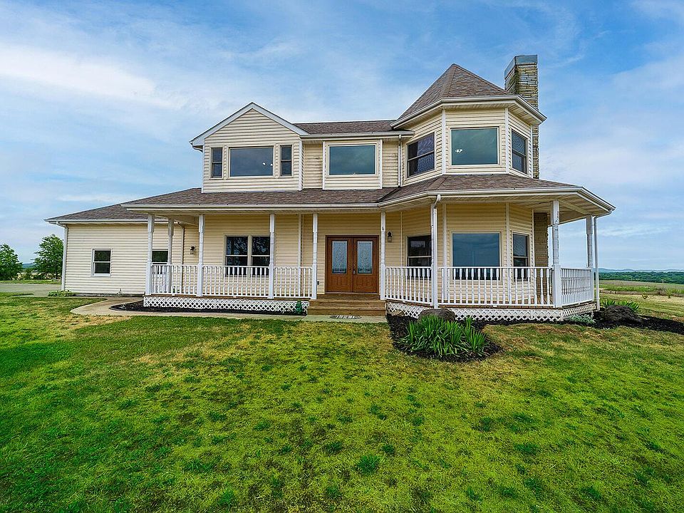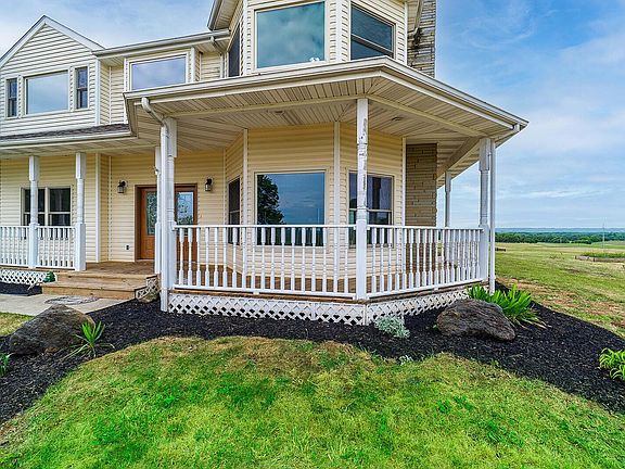 Welcome to this extraordinary 7-acre property, with country living at its finest. Positioned on the second highest point in Pickaway County(per seller), the stunning views stretch for miles! As you step inside you will see a beautiful oak staircase with hardwood floors guiding you through inviting living spaces. An open kitchen with generous counters and cabinets with an attached eating space. All 5 bedrooms have multiple windows with great views. The attached garage offers convenience for the main residence, while the detached garage provides additional space for vehicles, equipment, or a workshop.The home boasts a framed walk-out unfinished basement. Walls are pre-hung with drywall covering approximately 25% of the framing. Enjoy temperature control by individual floor with 2 heat pumps