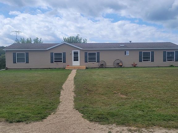 Looking for some acreage in the country, look no further, this property is perfect for those looking for privacy or prime hunting land. currently used as a horse facility and horse therapy all set up with separate pastures and shelter area. 3 bed, 2 full bath home has vaulted ceilings, sky lights, nice big kitchen / Dinette area with 3 nice sized bed rooms and wide open feel. Sits high on the hill overlooking the pasture and wetland areas, Nice big shed 36x81 for your toys or any Animals you may want to have. All measurements are approximate, Buyer to verify if important. Driveway is shared with Neighbor whom has an easement to access their property to the west.