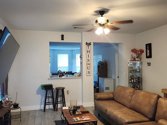 This home still boast some newness based on it was only lived in for 2 years. Walking into the home you are entering the living area that's ready for entertaining friends and family. It has a ceiling fan and nice size windows. Off the living room there's a hallway leading to the guest bathroom and 2 bedrooms. Leading from living room into the nice size eat in kitchen that has a nice size island pantry and utility closet with washer dryer connections