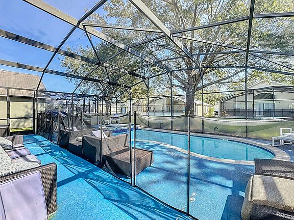 6 MONTH LEASE! STUNNING Emerald Island Resort FULLY FURNISHED5 bedroom 4.5 bath luxury pool home, features, 2 master suites, deluxe furnishings, private screened-in pool area, quartz kitchen counter tops and stainless appliances! The Emerald Island Resort is a gated community 3 miles from Disney, and less than 20 minutes away from Sea World, and Universal Studios! Lawn care and basic cable included! Amenities include Community Pool, Tiki Bar, Basketball and Volleyball courts, fitness center, and a clubhouse with daily shuttles to the theme parks!