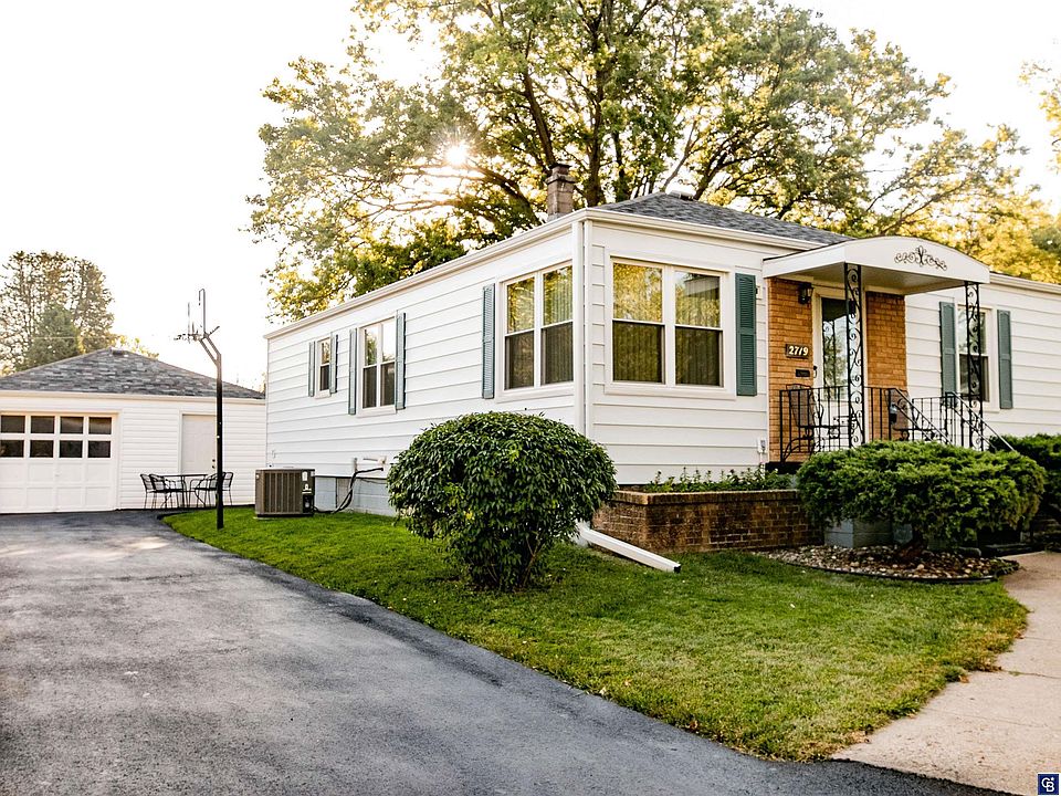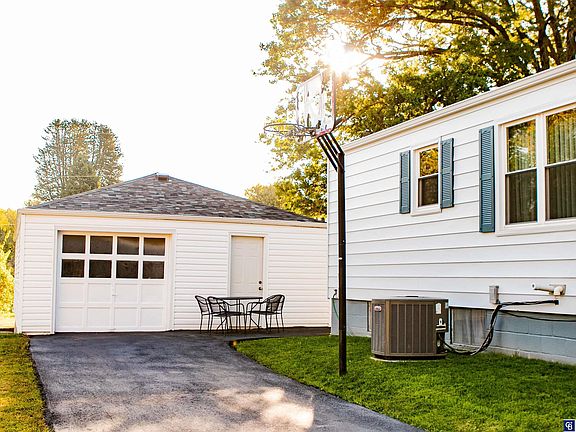 Ranch home with nice updates. New roof, steel siding, and gutters with leaf guards in 2022. New asphalt driveway Aug. 2023. All windows have been replaced with high efficient one's. New carpets upstairs 3 years ago. (Nice Hard wood floors under all carpets) Huge Primary bedroom with sitting makeup area. The kitchen was remodeled with new cabinets and built in hutch. 2 Pockets doors to living rm and to back door. Nice big living room. Enclosed sunroom off kitchen. Finished lower level with office area, play room for kids and several nice finished rooms plus a rec room. Could use lower level as a second kitchen also. Gas Stove included plus it has a nice 3/4 bath in the lower level. Back yard is fully fenced and is very private. Huge tandem garage with new roof, vinyl siding and gutters with guards. Tandem garage also has a workshop area a with a covered pit so you can work on your car and change the oil. This is a mechanics dream garage and also has a heating system in the garage.